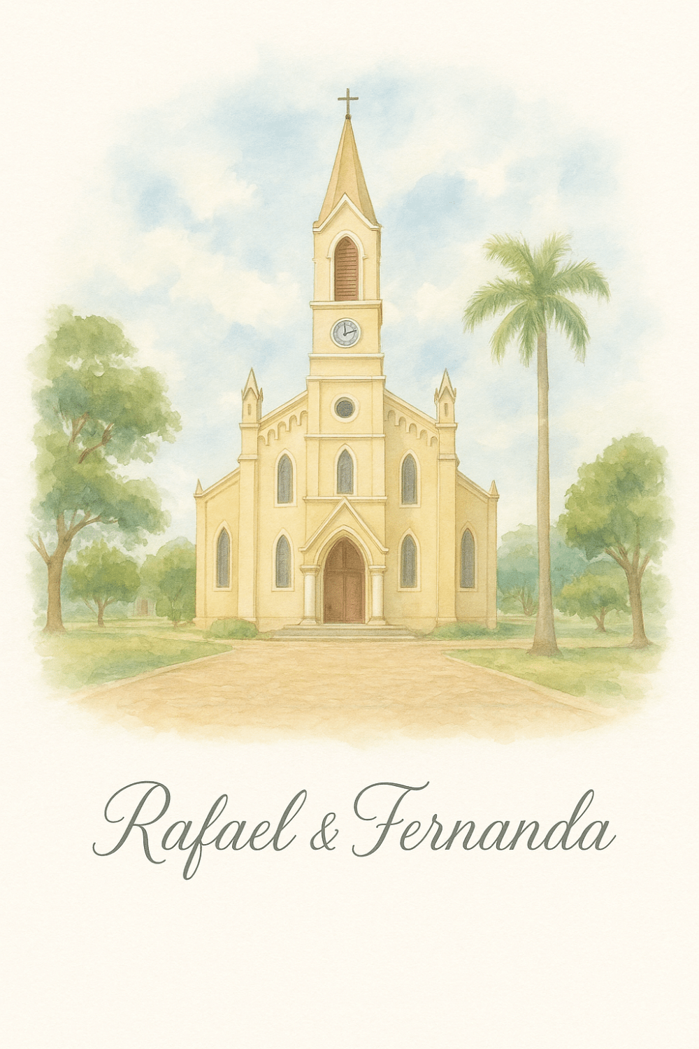Gostaríamos muito de contar com a presença de todos vocês no momento em que nossa união será abençoada diante de Deus! A cerimônia será rápida e tentaremos ser extremamente pontuais. Contamos com vocês! Dia 14 de novembro de 2025, às 16:30. Praça Padre Peretti, n° 48 - Centro, Urupês - SP, 15850-021